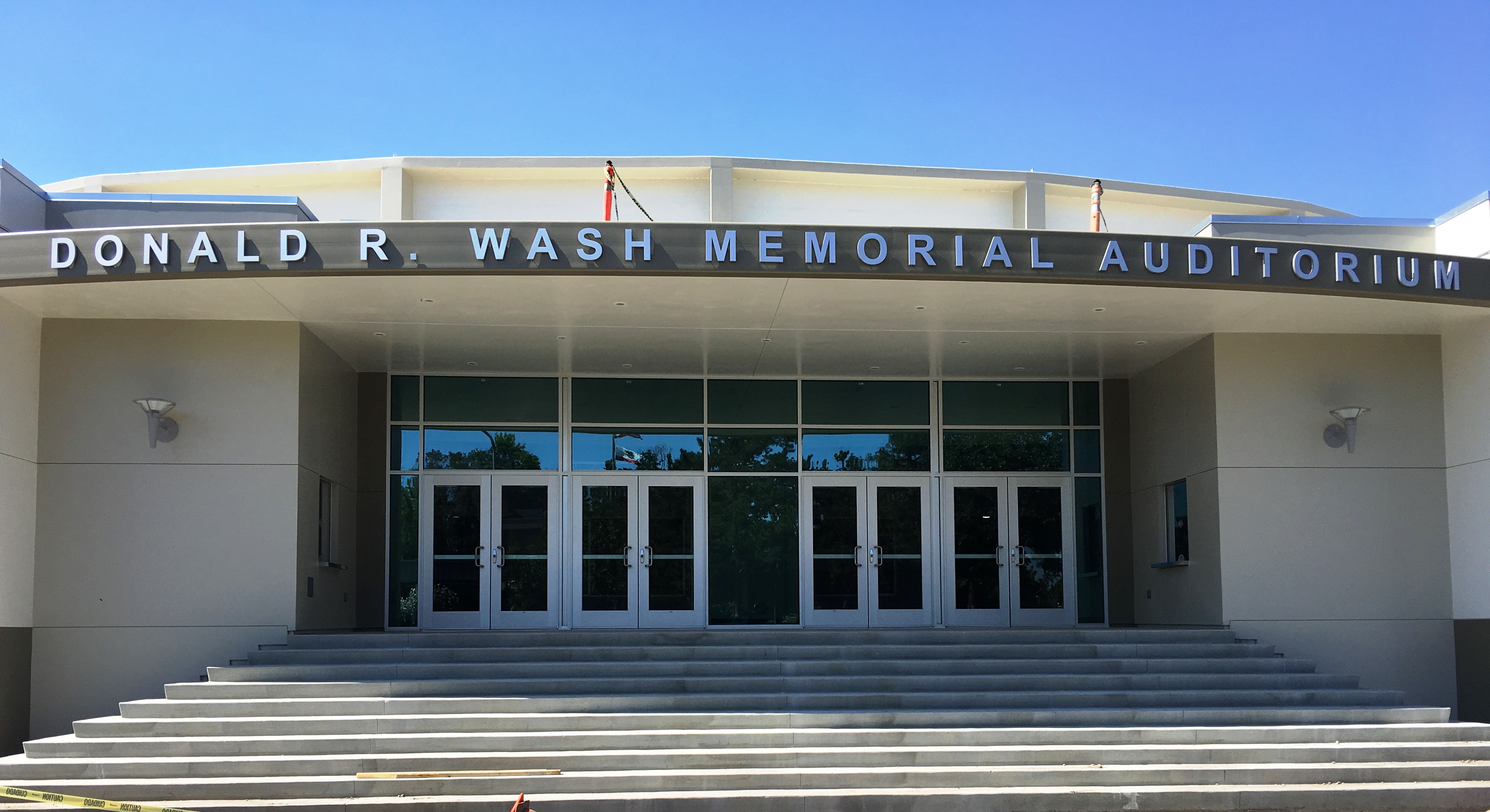 Don Wash renovations include interior and exterior ADA accessible ramps, accessible restrooms, and accessible auditorium seating; air-conditioning; a new grand entrance with exterior lighting and landscaping; and new ticket booths in the lobby.